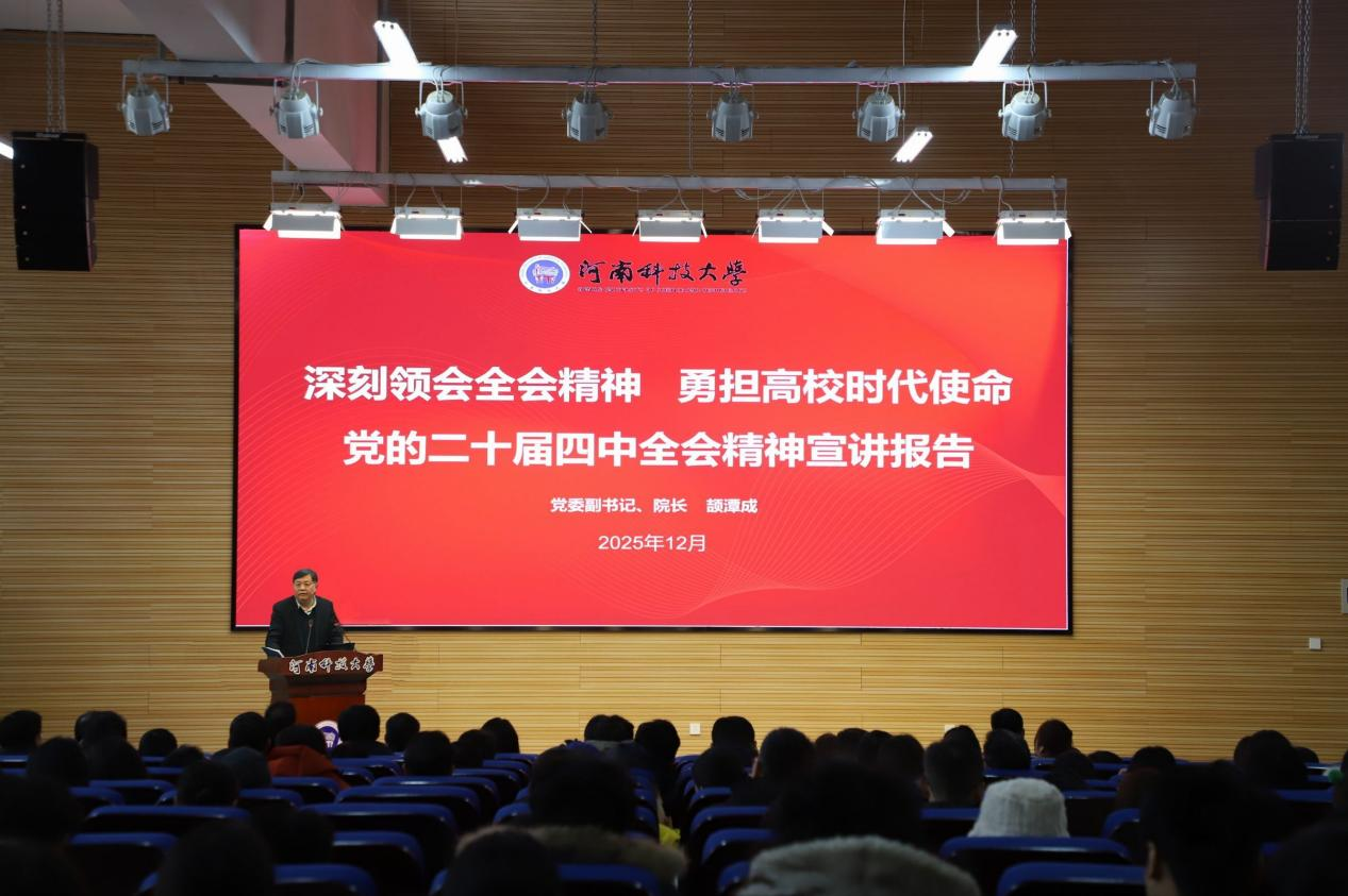 12月31日,学院党委副书记、院长颉潭成教授在5137报告厅作学习贯彻党的二十届四中全会精神专题宣讲报告会。