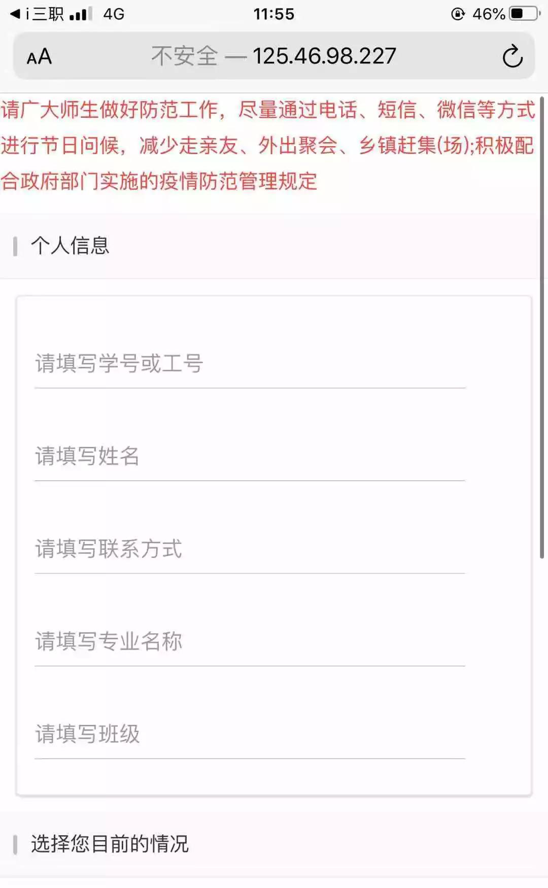 学院“I三职”APP上小程序网上登记师生健康状态信息