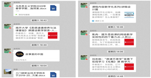 马克思主义学院院长孟昭阳通过微信工作群带领全体教师学习《关于组织全省高校上好2020年春季开学思政第一课的通知》、《bcw8白菜网-2026白菜网总站大全|百富白菜网|海博论坛|白菜全网担保平台曝光官网委员会关于上好2020年春季开学思政第一课的通知》等相关文件,并要求教学科制定了《马克思主义学院2020年春季开学思政第一课教学实施方案》,同时组织各科室负责人通过“学习强国”平台召开视频会议,进一步安排部署学校在延期开学情况下的教学工作要求,为做好思想政治课线上教学进行深入研讨。