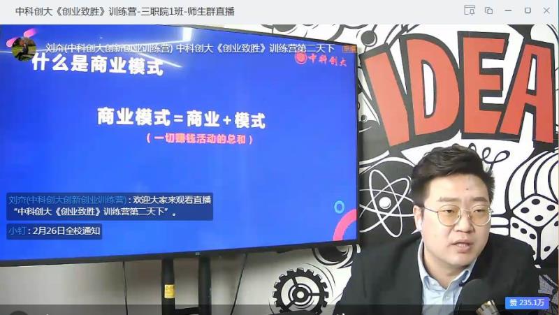 我院创新创业学院为响应教育部 “停课不停学”号召,深化创新创业教育改革,充分发挥“互联网+教育”的功能,于2月25日至28日与中科创大联合推出《创业致胜》训练营在线直播课程。