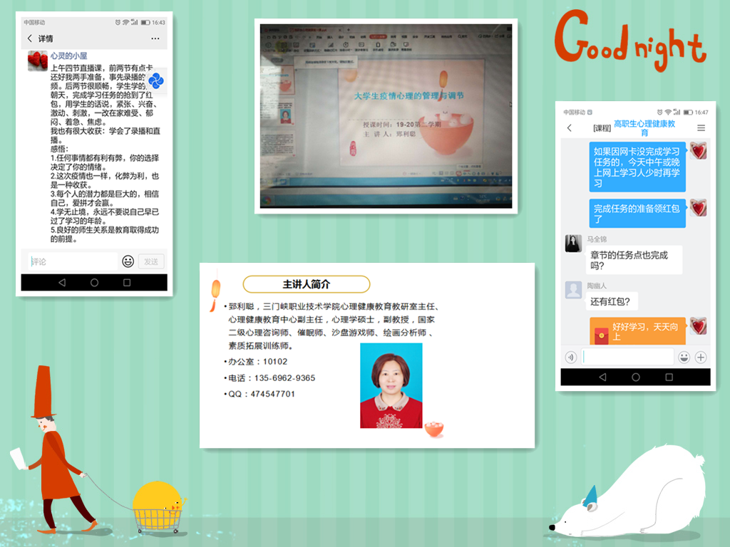 疫情发生以来,全院上下迅速铺开疫情阻击“作战网”,各党支部、各部门严格24小时值班值守,坚持每天通过“线上三门峡”APP进行健康状况上报;公共教学部教工党支部(全国第一批样板党支部)党员发挥体育专业优势,收集整理居家健身的教学视频,通过网络发布,为全体师生和社区群众提供健身指导;医护学院党总支为全体师生制作《口袋书》,进行防控科学知识教育,告知发热后的处置流程;学院心理健康教育中心教师党员为学院有需求的师生提供心理咨询,为三门峡市社区群众提供公益心理援助服务。