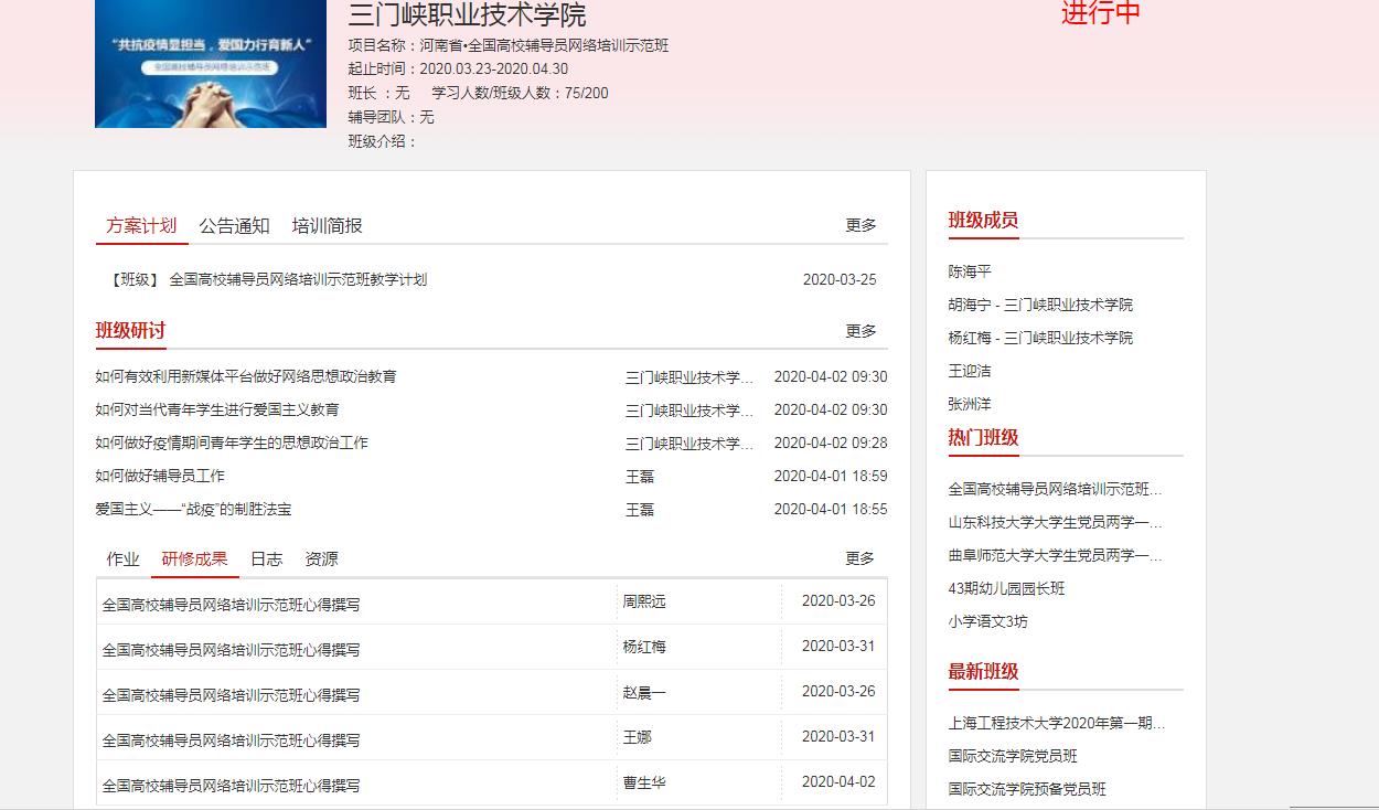 为深入贯彻落实习近平总书记系列重要指示精神和党中央决策部署,统筹推进疫情防控和年度重点工作。按照教育部党组部署要求,为引导高校辅导员深刻认识疫情防控背景下加强思想政治工作的重要性紧迫性,增强新形势下做好学生思想政治教育工作的能力。由教育部主办、高校思想政治工作队伍培训研修中心承办,以“共抗疫情显担当,爱国力行育新人”为主题的全国高校辅导员网络培训示范班如期开班。