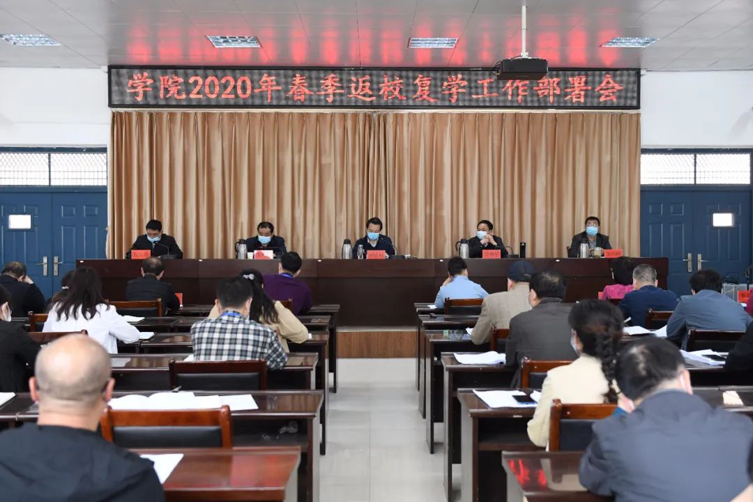 4月29日下午,学院在1106会议室召开了“2020年春季返校复学工作部署会”。党政领导班子全体成员、各院(部)、各部门党政负责人参加会议,党委委员、常务副院长李久昌主持会议。