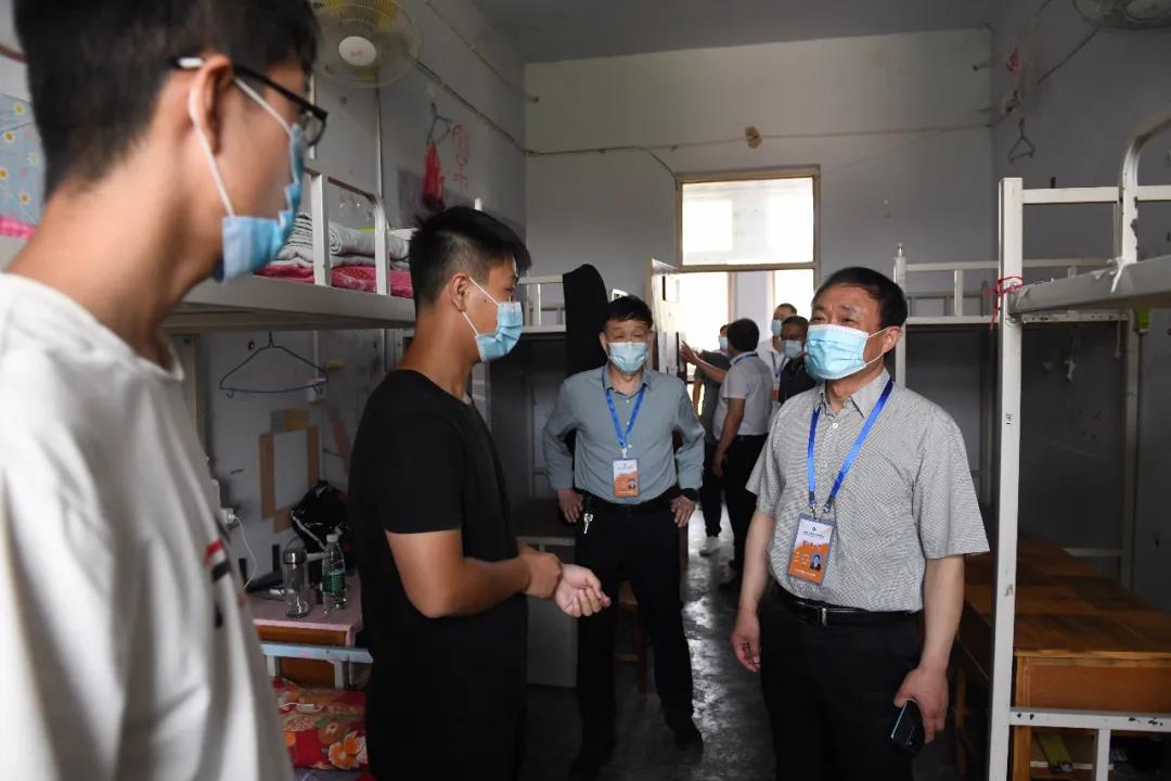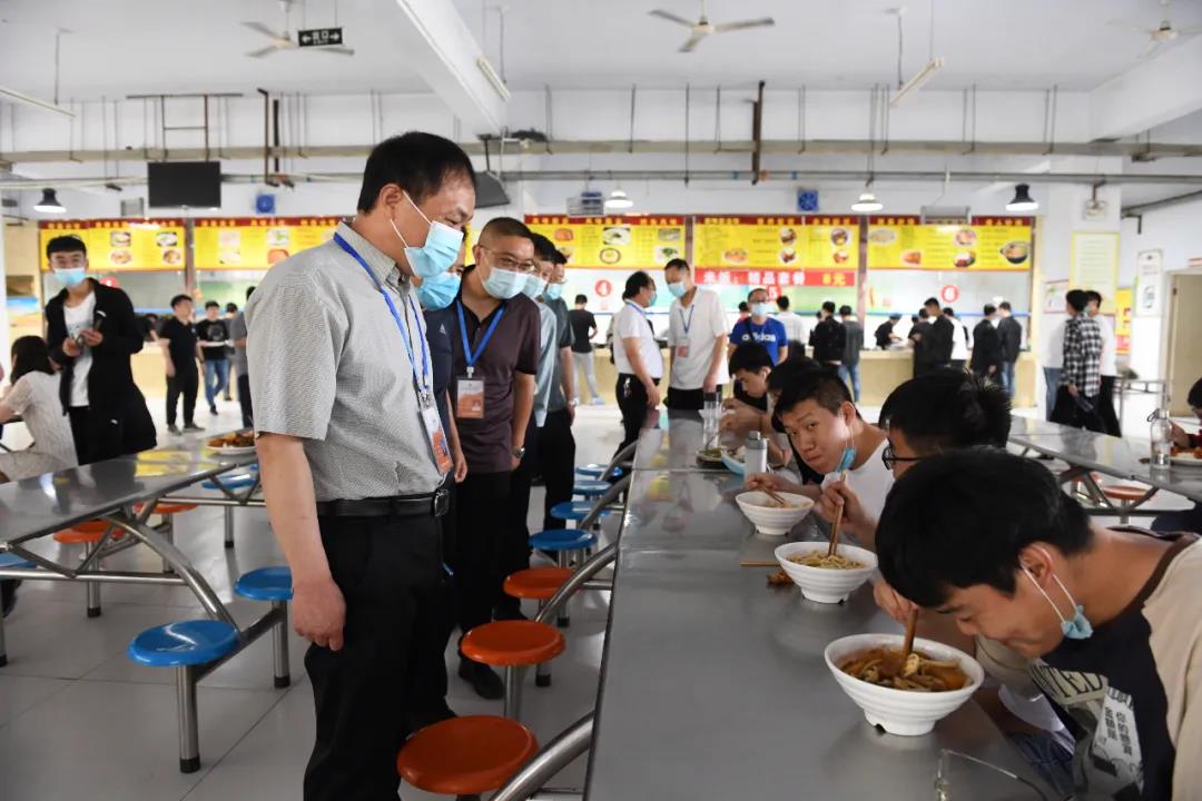 吴勇军一行先后查看了报到现场、食堂、学生公寓、教室等场所,详细了解学生返校流程、食堂就餐管理、学生公寓管控、线下教学安排与管理、校园消杀等工作,并就学生返校复学后的各项工作提出了具体要求。