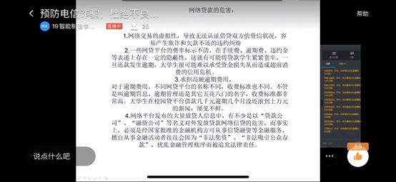 针对18级部分院部学生返校,19级学生未返校的情况,各院部结合实际情况,分别开展了线上和线下的诚信教育活动,以“感恩在心 诚信在行 责任在肩”为主题,各班辅导员介绍了国家助学贷款、国家奖助学金、勤工助学、雨露计划、校内奖学金等资助政策,详细解读了各项资助政策相关的申请条件、申请程序、注意事项、认定标准、评议制度等各方面事宜。重点教育学生预防诈骗,远离不良贷,套路贷,让征信意识和金融风险防范意识入心入脑,促使学生树立诚信观念,增强法律意识,履行国家助学贷款合同。通过学生资助诚信教育主题班会,一方面强化了学生的诚信意识,另一方面加强了学生对国家资助政策的全面了解,扩大了诚信教育系列活动的影响力,使更多学生铭记诚信的重要性。