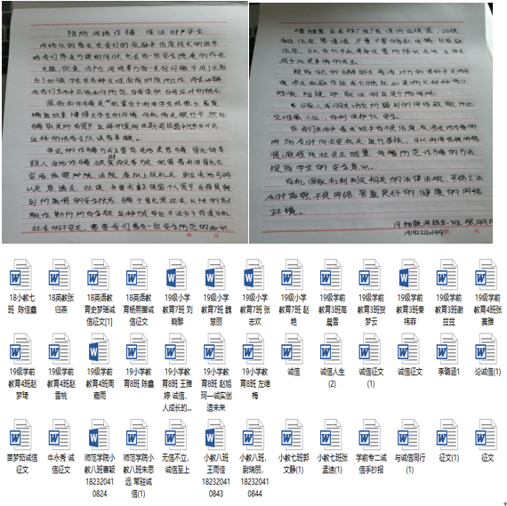 为了形成良好的诚信之风,树立诚信品质,院部各班级召开了“诚信征文”主题活动。同学们从自身视角出发,生动描述了在资助政策的帮助下自强拼搏的奋斗历程。通过征文活动,激发学生的责任感,使每一位学生都受到诚信的感召,使大家深刻的意识到在日常生活中要时刻保持诚信处事的原则。将诚信融入到学习和生活中的每一件小事中,让诚信变为一种自发的习惯行为。