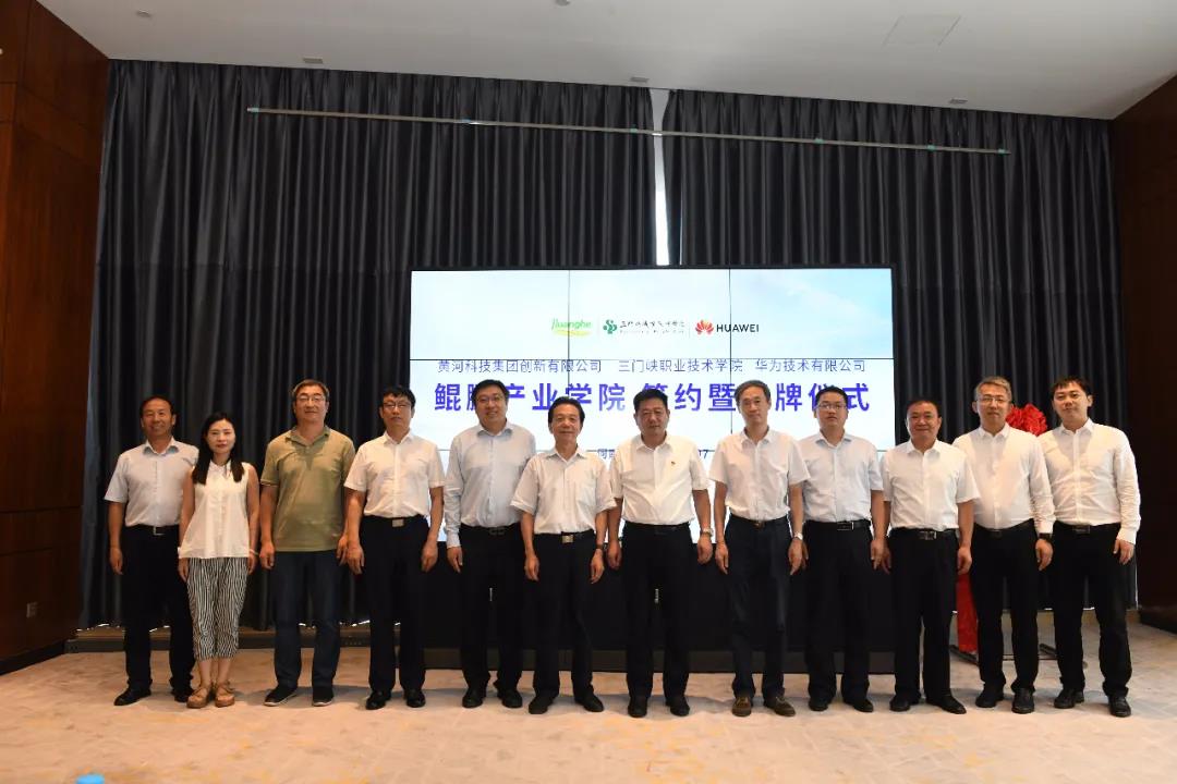 河南省教育厅高教处处长张水潮,河南省教育厅职成教处副处长史文生,三门峡市人民政府副市长孙继伟,三门峡市政府副秘书长、三门峡市政务服务和大数据管理局局长王江舟,三门峡市教育局副局长段晋中,黄河科技集团创新有限公司董事长冯武,华为技术有限公司河南政企副总经理王朋出席仪式。