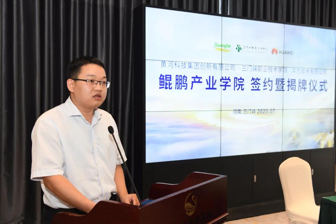 黄河科技集团创新有限公司董事长冯武、华为技术有限公司河南政企副总经理王朋分别介绍了鲲鹏产业学院的人才培养模式、鲲鹏产业的发展前景,他们表示将与学院持续深化合作,构建校企研深度融合、协同育人的办学模式,共同打造产业生态完善、核心技术领先、应用场景丰富的鲲鹏产业高地。