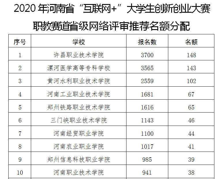 根据8月10日《第六届“互联网+”大学生创新创业大赛省赛组委会通知》,我院共有46个职教赛道创业项目进入省赛网评,实现入围河南省省赛的新突破。