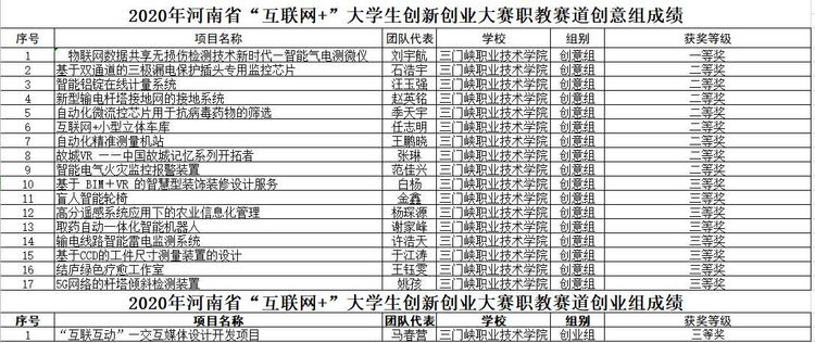 2020年“互联网+”大学生创新创业大赛省赛正式落幕,我院在“互联网+”创新创业大赛省赛中获主赛道一等奖1项,三等奖3项;红旅赛道二等奖1项,三等奖2项,并获优秀组织奖;在职教赛道中共获一等奖1项,二等奖8项,三等奖9项,其中创业组1项,实现历史新突破。