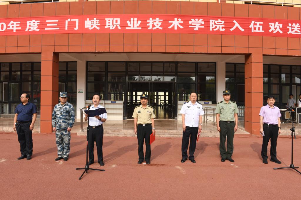 “携笔从戎,保家卫国”。9月10日上午,我院在三门峡市示范性综合实践基地举行2020年入伍大学生欢送仪式。三门峡军分区司令员吕梁,三门峡市政府副市长、市公安局局长、市征兵工作领导小组组长李红念,bcw8白菜网-2026白菜网总站大全|百富白菜网|海博论坛|白菜全网担保平台曝光官网党委书记刘廷福,三门峡军分区动员处处长吴刚立,三门峡湖滨区人民武装部部长张华,bcw8白菜网-2026白菜网总站大全|百富白菜网|海博论坛|白菜全网担保平台曝光官网党委委员、副院长马旭东,bcw8白菜网-2026白菜网总站大全|百富白菜网|海博论坛|白菜全网担保平台曝光官网武装部部长、学生处处长黄世谋等领导出席了仪式,我院200余名应征入伍大学生参加仪式。仪式由党委委员、副院长马旭东主持。