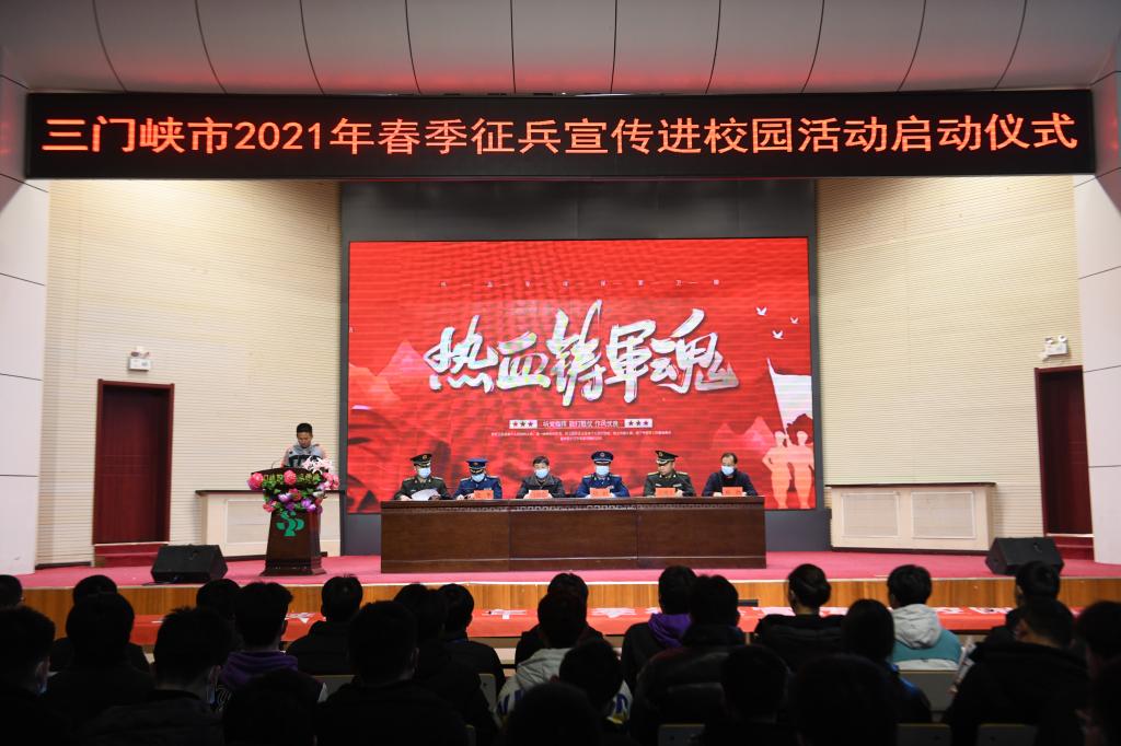 12月24日下午,三门峡市2021年征兵宣传进校园活动启动仪式在我校学术报告厅举行。军分区副司令员、市征兵办主任刘恒,军分区动员处处长吴刚立,湖滨区人武部部长张华,学院党委委员、副院长马旭东,武装部副部长、学生处副处长曲扬出席本次活动。参加本次活动的还有各院部学生代表700余人。