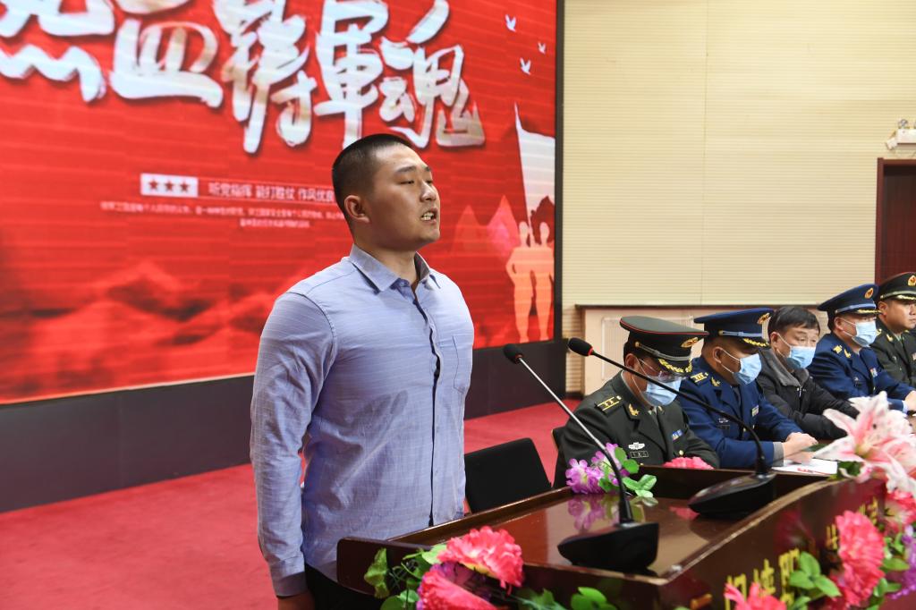 在庄严的国歌声中,活动拉开帷幕。本次活动由军分区动员处处长吴刚立主持。首先由张华带领大家重温了《习近平给南开大学新入伍大学生回信》的内容精神。接下来退伍和新参军报名的学生代表分别进行了发言,倡议广大青年朋友,把爱国情怀转化为参军报国之志,积极报名参军。