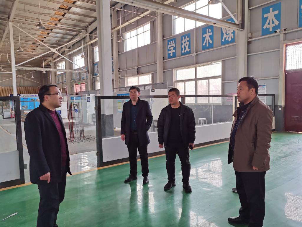 在王波的陪同下,张永胜一行4人参观了学院的校园文化长廊、古城墙、砚池、机电和建筑工程训练中心,对我院完善的教学设施和优美的校园表示赞赏。
