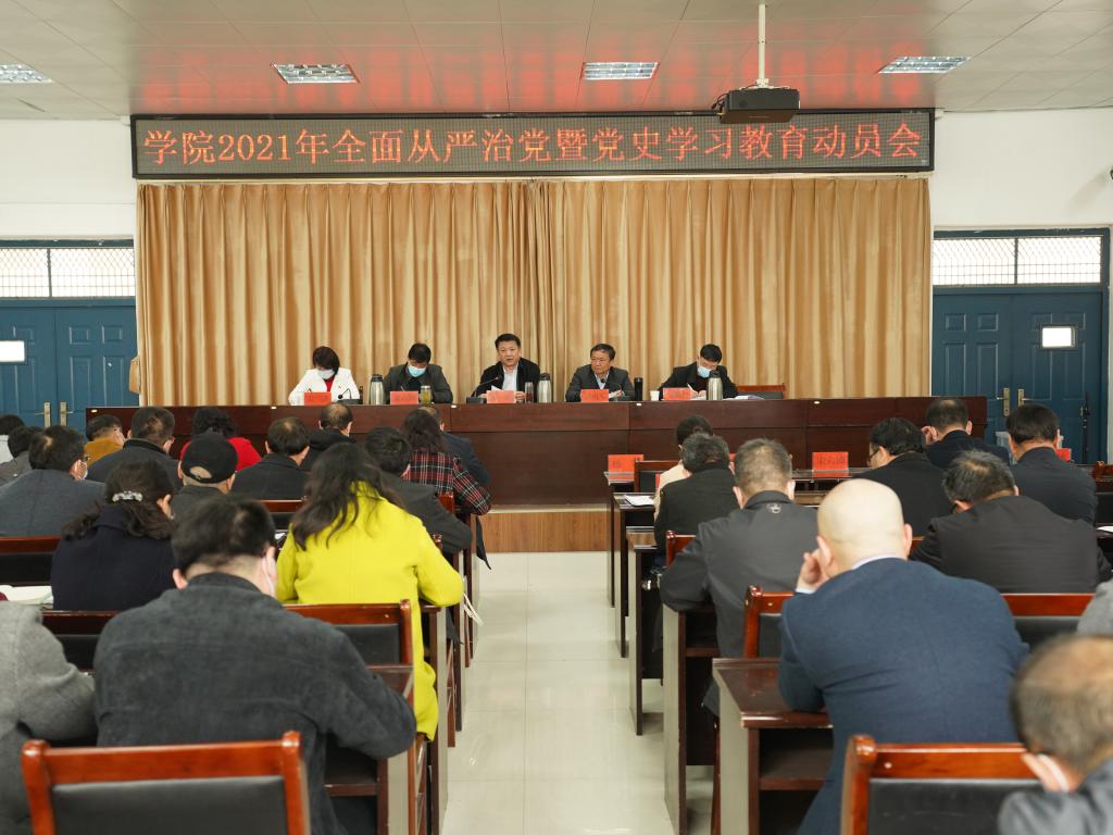 3月24日,学院2021年全面从严治党暨党史学习教育动员会在1106会议室召开,党委书记杨彤出席会议并做动员讲话。学院党政领导班子成员、全院副科级以上领导干部和基层党支部书记参加会议,会议由党委副书记、院长吴勇军主持。
