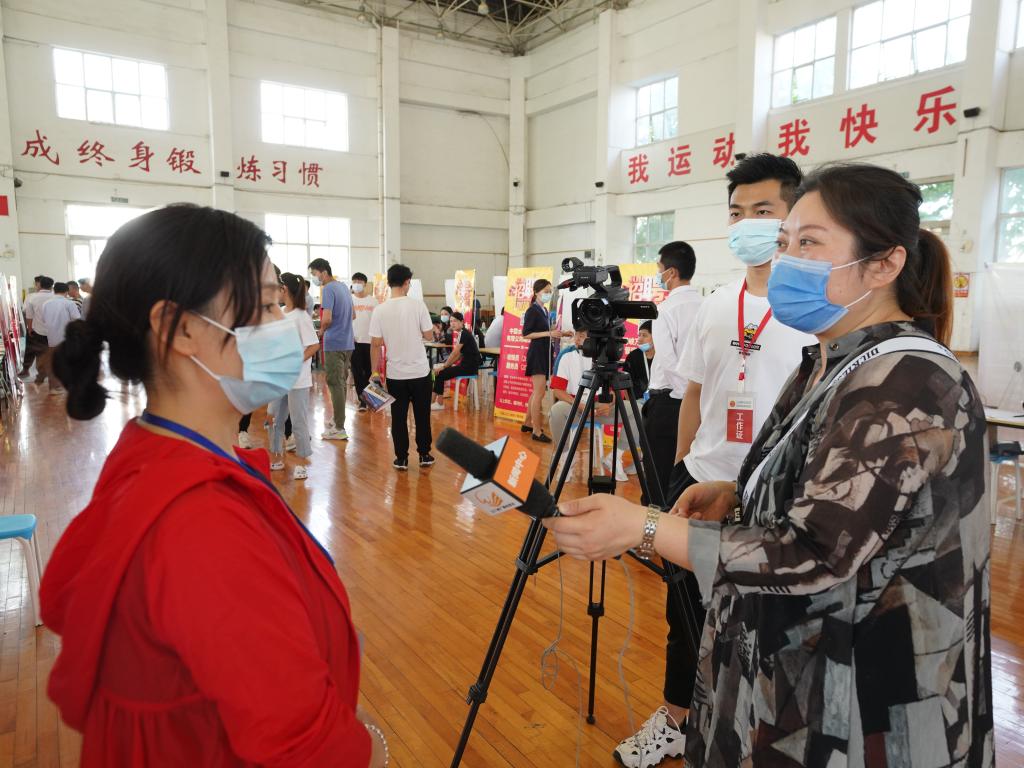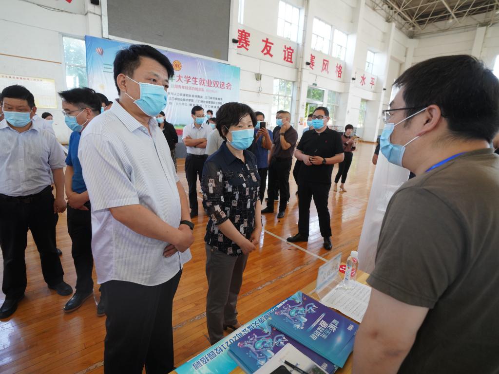 市人大常委会副主任、总工会主席韩迎春、学院党委书记杨彤与用人单位交流企业招聘情况