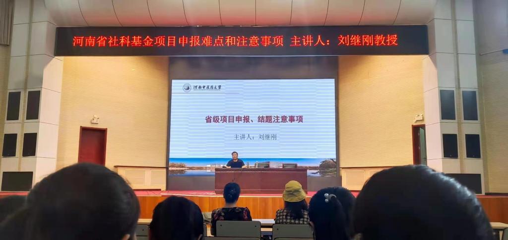 6月2日下午,科研处与师范学院联合特邀河南中医药大学刘继刚教授在天鹅湖校区学术报告厅做了《河南省社科基金项目申报难点及注意事项》专题报告。师范学院、应用工程学院、信息传媒学院、经济管理学院、公共教学部、基础部教师参加了讲座。