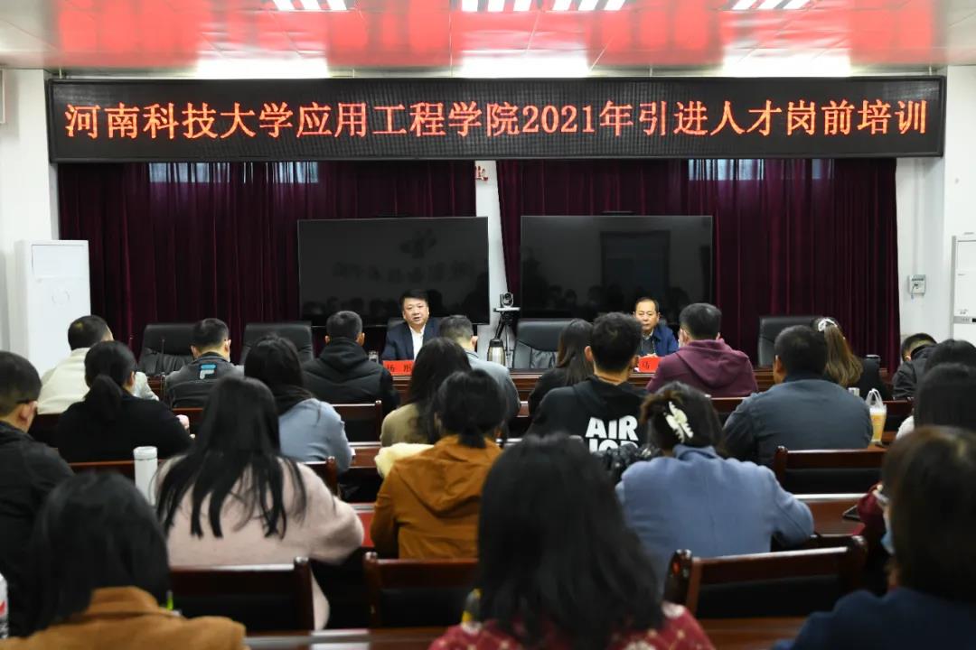 10月27日上午,党委书记杨彤为学院2021年新进教师作岗前培训。杨彤结合学院基本情况和应用技术教育在国家的战略地位讲起,分析了学院目前发展取得的成绩和存在的问题,向新进教师介绍了学院“十四五”期间两大中心任务的安排部署。
