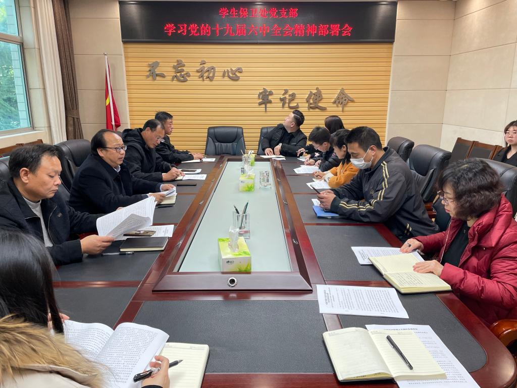 11月12日,学生保卫处党支部在308会议室召开会议,专题部署学习贯彻党的十九届六中全会精神。党支部全体党员参加了学习活动,党支部书记黄世谋主持会议并讲话。