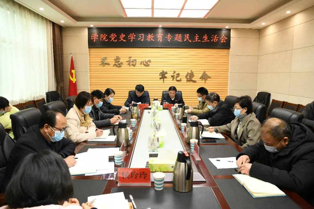 1月24日,学院党委领导班子党史学习教育专题民主生活会在行政楼第三会议室召开,会议紧扣“大力弘扬伟大建党精神,坚持和发展党的百年奋斗历史经验,坚定历史自信,践行时代使命,厚植为民情怀,勇于担当作为,团结带领人民群众走好新的赶考之路”主题,回顾一年来学院党委抓党史学习教育、履职抓党建工作职责情况,总结成绩,查摆问题,深刻进行对照剖析,严肃开展批评和自我批评。