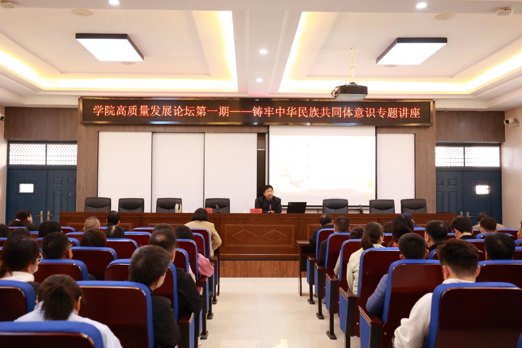 3月10日下午,“学院高质量发展论坛”首期开讲,论坛邀请三门峡市民族宗教事务局党组成员、副局长王新民作“铸牢中华民族共同体意识”专题讲座。组宣部、学生处、团委、保卫处等部门负责人,各院部党总支书记、分管学生工作副院长、学生科科长和全体辅导员参加学习。党委委员、组宣部部长侯玲玲主持讲座。