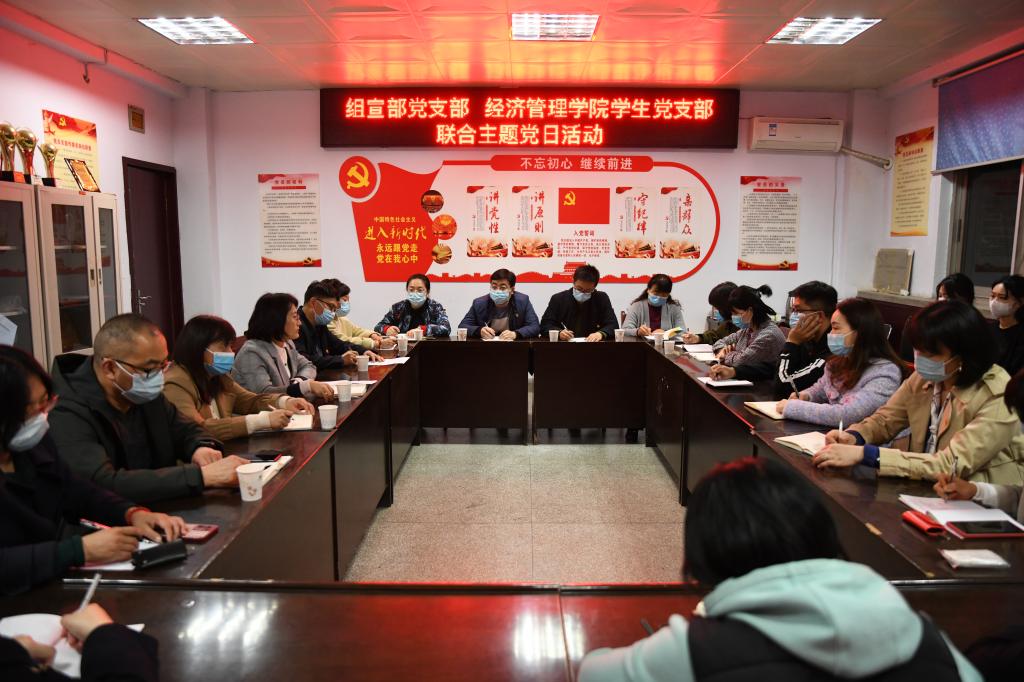 4月4日晚,组宣部党支部和经济管理学院学生党支部开展联合主题党日活动。学院党委委员、组宣部党支部书记侯玲玲,经济管理学院党总支副书记、院长齐天峰,组宣部全体党员,经管学院三个学生党支部的全体支委和学生入党积极分子代表参加了主题党日活动。