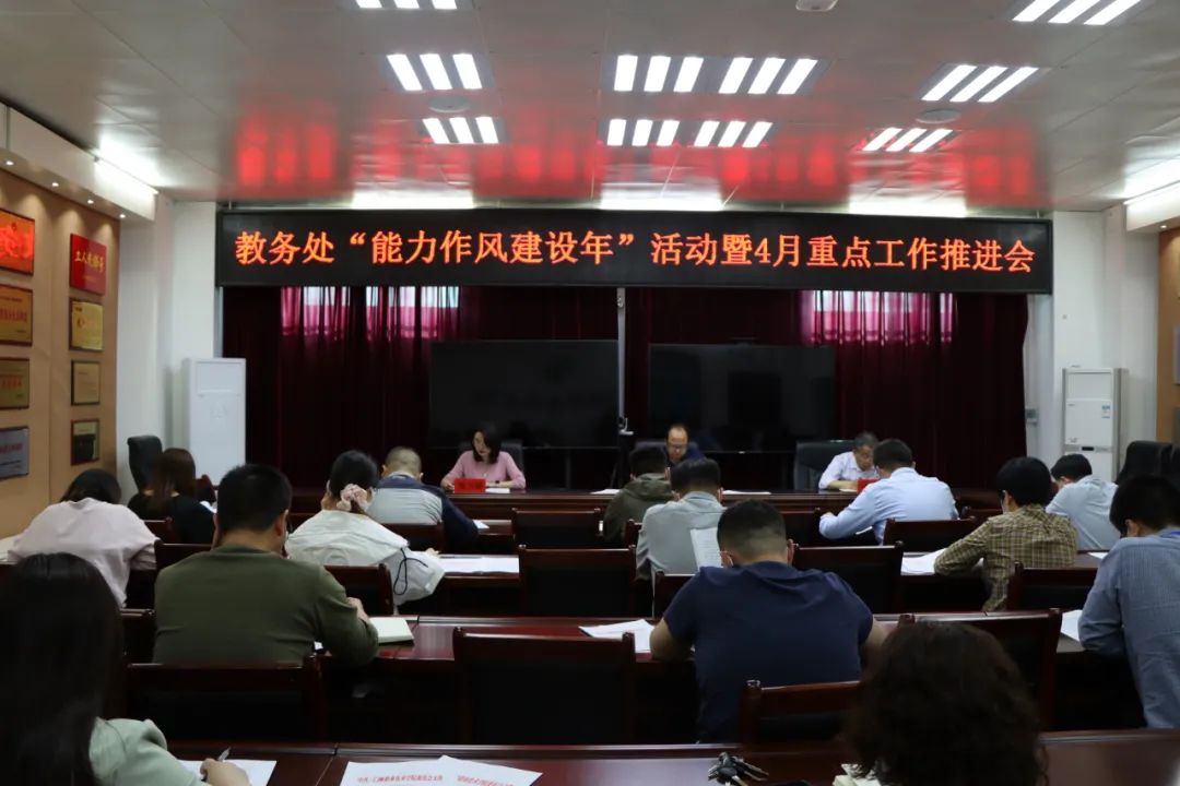 4月11日下午,教务处在老校区荣誉室召开“能力作风建设年”活动暨4月重点工作推进会,党委委员、副院长黄世谋出席会议并讲话。各院部教学秘书及教务处全体人员参加会议,会议由教务处负责人马建明主持。