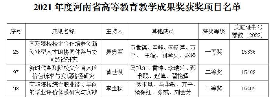 附:我院2021年度河南省高等教育教学成果奖获奖项目名单