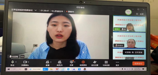 由于疫情影响,学生在实习结束后不能返校,本次答辩采取线上方式进行,党委委员、副院长黄世谋,应用工程学院副院长马涛到现场观摩指导,应用工程学院会计系主任、经济管理学院院长齐天锋全程参与答辩工作。参与答辩的毕业生首先对自己的论文进行简要陈述,包括选题、研究思路、主要内容、创新点等, 22位校内教师及8位企事业单位专家组成的答辩委员会针对学生们的研究方法、研究内容、数据分析、格式排版等给出专业的点评和建议,最后,答辩委员会根据学生的综合表现给出评分。答辩历时7个小时,共98位毕业生顺利通过了毕业论文答辩。