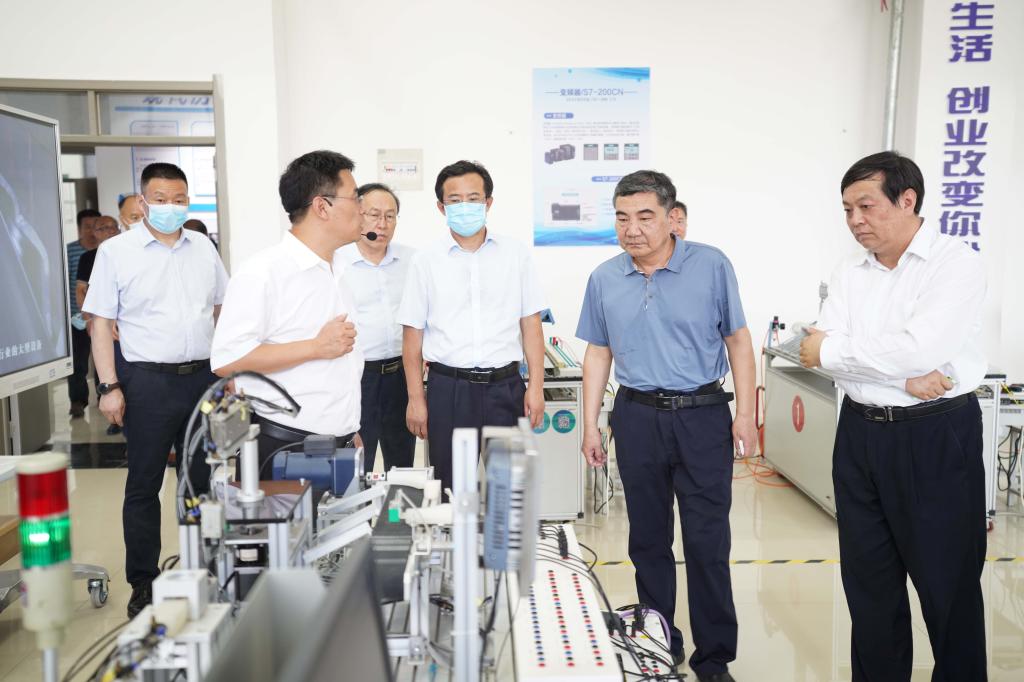 陈垠亭一行冒着酷暑先后实地调研了河南省关键金属实验室、数智融合实训基地、智能制造实训基地、汽车装备实训基地、医护实训基地、禹泽书院等教育教学场所,每到一处,都详细询问、深入了解学院人才培养、教学改革、教学建设等情况。调研中,陈垠亭认真听取了我院灵凤湖校区建设有关情况汇报,详细询问了灵凤湖校区目前的运行状况,对我院灵凤湖校区建设的高标准设计、高速度推进、高质量运转给予了高度评价。