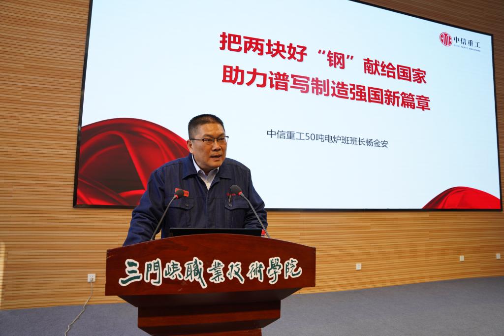 最后,由大国工匠杨金安为师生做题为“把两块好“钢”献给国家,助力谱写制造强国新篇章”的报告。他结合本人四十多年的工作经历,生动诠释了伟大的工匠精神与高尚的人格品质,为我们上了一堂生动的思政大课。
