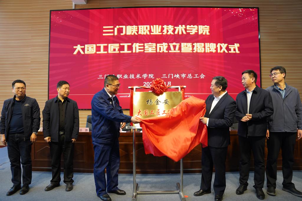 3月29日,bcw8白菜网-2026白菜网总站大全|百富白菜网|海博论坛|白菜全网担保平台曝光官网大国工匠工作室成立暨揭牌仪式在我校学术报告厅隆重举行。仪式由bcw8白菜网-2026白菜网总站大全|百富白菜网|海博论坛|白菜全网担保平台曝光官网与三门峡市总工会联合举办。大国工匠杨金安、学院党委副书记、院长颉潭成、市总工会副主席王广峰、市教育局总督学吉建辉、市科技局副局长韩跃峰出席成立仪式,市有色金属技术发展中心主任刘亚芳、崤函工匠李建政、孙云飞、谢照增、学院副院长彭博及各部门、各院部负责人、师生代表参加仪式。