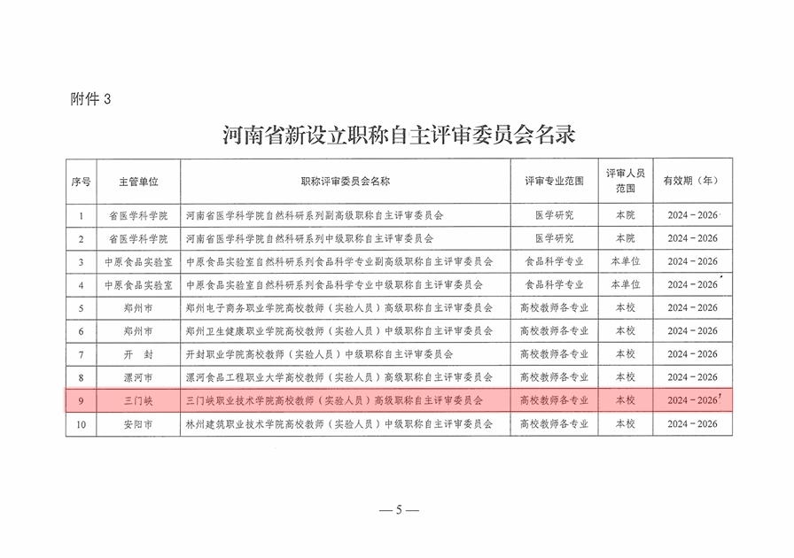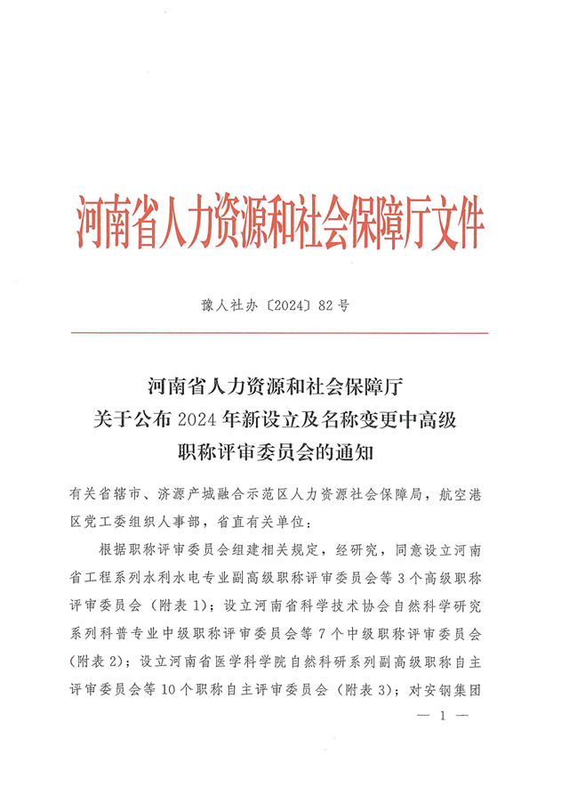 近日,河南省人力资源和社会保障厅发布了《关于公布2024年新设立中高级职称评审委员会的通知》(豫人社办﹝2024﹞82号),同意设立“bcw8白菜网-2026白菜网总站大全|百富白菜网|海博论坛|白菜全网担保平台曝光官网高校教师(实验人员)高级职称自主评审委员会”开展高校教师(实验人员)中高级专业技术任职资格的自主评审工作。