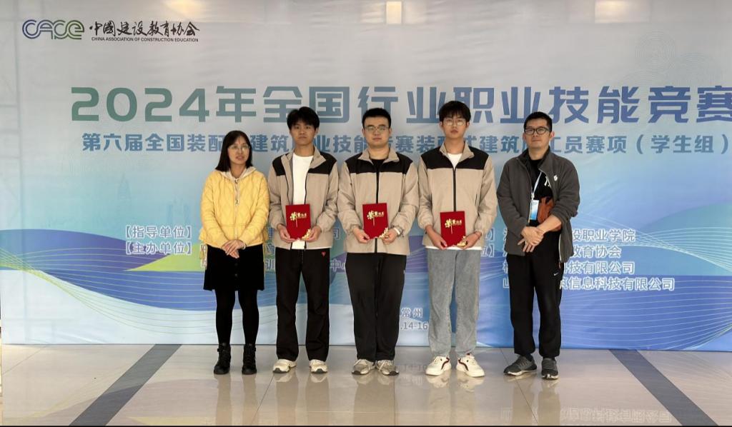11月15—16日,2024年全国行业职业技能竞赛第六届全国装配式建筑职业技能竞赛“装配式建筑施工员”赛项(学生组)全国总决赛在江苏城乡建设职业学院举办,来自全国15个省市的312名选手进入最终对决。经过激烈的角逐,建筑工程学院的三位参赛选手凭借扎实的专业技能和良好的心理素质,共获得二等奖两项,三等奖一项。其中,王文祥同学在构件制作与安装模块获得二等奖,王鹏阳同学在智能建造技术应用模块获得二等奖,程传祥同学在构件深化设计模块获得三等奖。