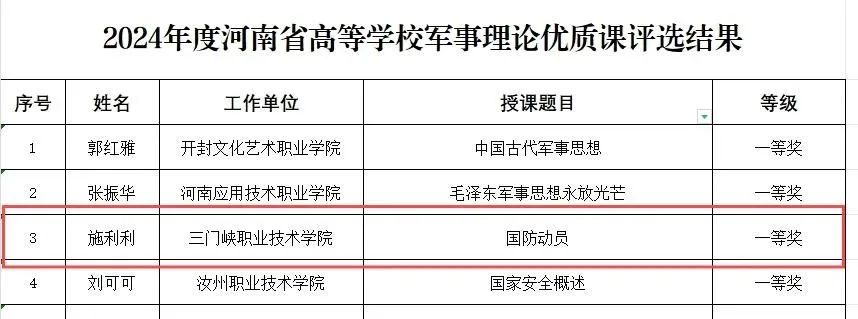 近日,由河南省教育厅、河南省军区战备建设局主办的“2024年度全省高等学校军事理论优质课征集活动”公布结果,马克思主义学院国防教育教研室军事理论课兼职教师施利利荣获“一等奖”。