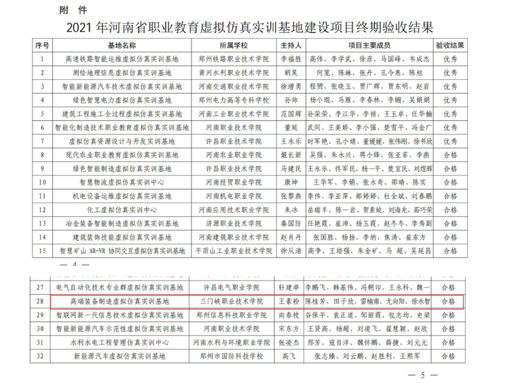 高端装备制造虚拟仿真实训基地自2021年入选河南省第一批示范性虚拟仿真实训基地培育项目以来,按照高水平教学、高水平应用、高水平研创的建设目标,完成多功能开放式虚拟仿真实训基地的场地基本建设、虚拟仿真教学软件开发、虚拟仿真教学实训管理平台安装部署、虚拟现实(VR)开发平台安装部署等工作,为高端装备制造领域提供身临其境的学习环境,有效解决了实训教学中的“三高三难”问题。