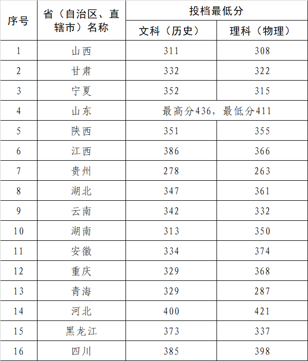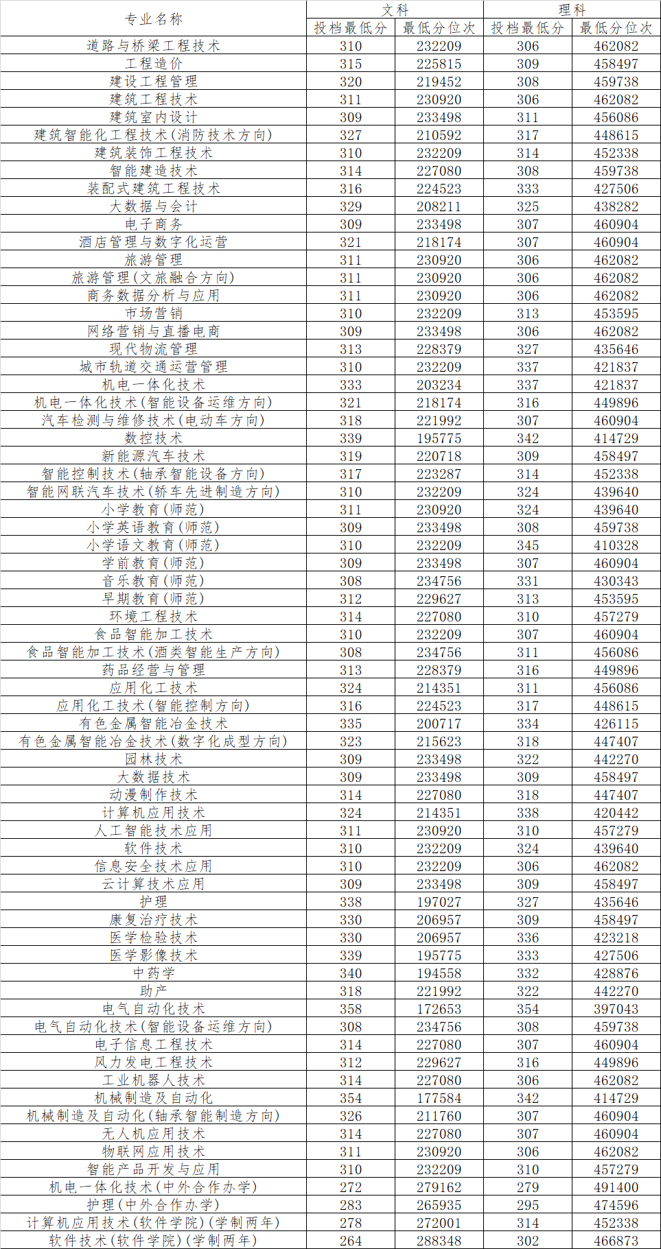 备注:体育专类专科、艺术类专科投档成绩按照河南省统一投档排序成绩计算办法执行