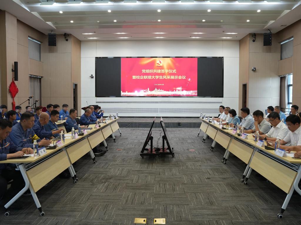 仪式上,双方举行了党组织共建签约仪式,标志着双方新合作正式启动。冷轧厂工会主席范利军回顾校企联培工作,展示了双方在人才培养、技术交流等方面的成果,为后续合作筑牢基础。