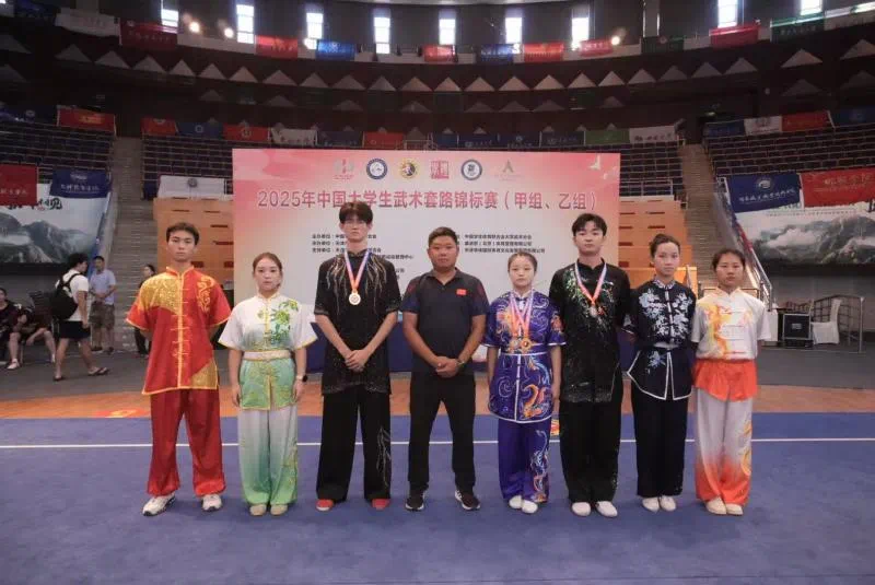 7月27日至31日,2025年中国大学生武术套路锦标赛(甲乙组)在天津武清区隆重举行。经过五天激烈角逐,运动员们表现出色,展现了扎实的基本功和高超的竞技水平,最终斩获3金5银的优异成绩,创造了学院在国家级体育竞赛中的历史最佳战绩。