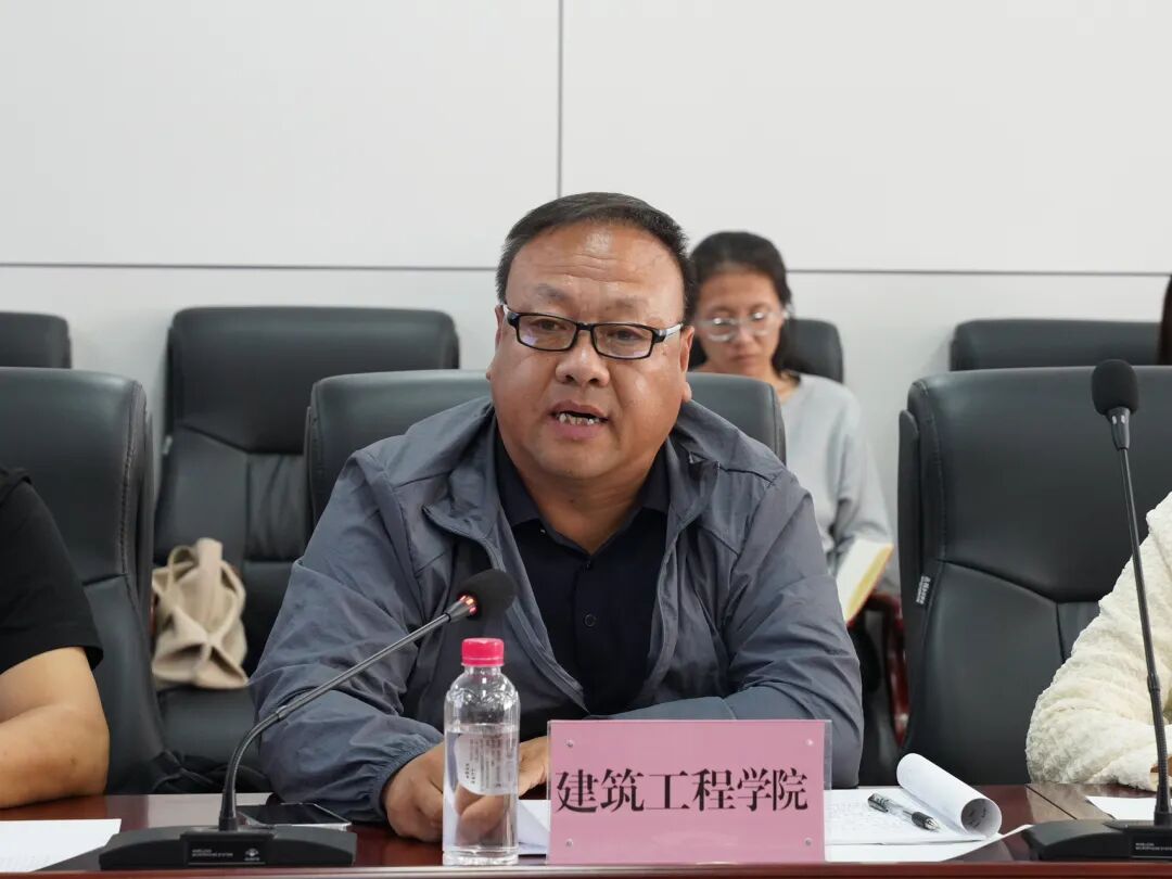 马克思主义学院院长孟昭阳、毛泽东思想和中国特色社会主义理论体系概论教研室主任陈翯、习近平新时代中国特色社会主义思想概论教研室主任赵东雪、思想道德与法治教研室主任冯欢欢、课程思政教师代表左晓虹、建筑工程学院党总支书记乔改伟、经济管理学院党总支书记孟媛、学工部部长翟艳辉先后发言,他们立足校内实际,结合教学实践,从课程设计、学情分析、技术赋能、师资建设、课程思政融合等方面分享了经验与思考,提出了具有针对性的建议。