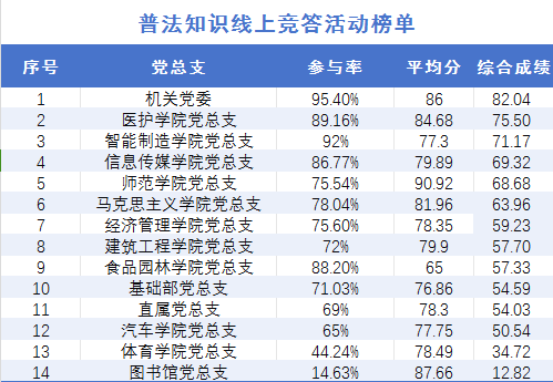 计算各党总支所有参赛的答题总分,除以参赛人数,得出平均得分。