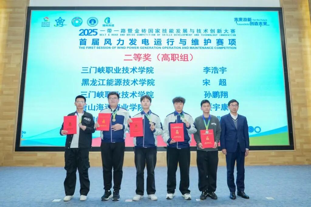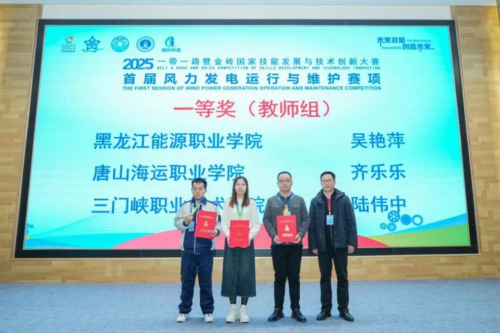 2025年10月23日至26日,2025一带一路暨金砖国家技能发展与技术创新大赛之首届风力发电运行与维护赛项决赛在唐山海运职业学院成功举办。学院师生代表队凭借扎实的专业功底和出色的现场表现,从来自全国的40余支参赛队伍中脱颖而出,共斩获1金、4银、1铜的优异成绩。彰显了学院在新能源领域人才培养的显著成效,更展现了“以赛促教、以赛促学”育人理念的丰硕成果。