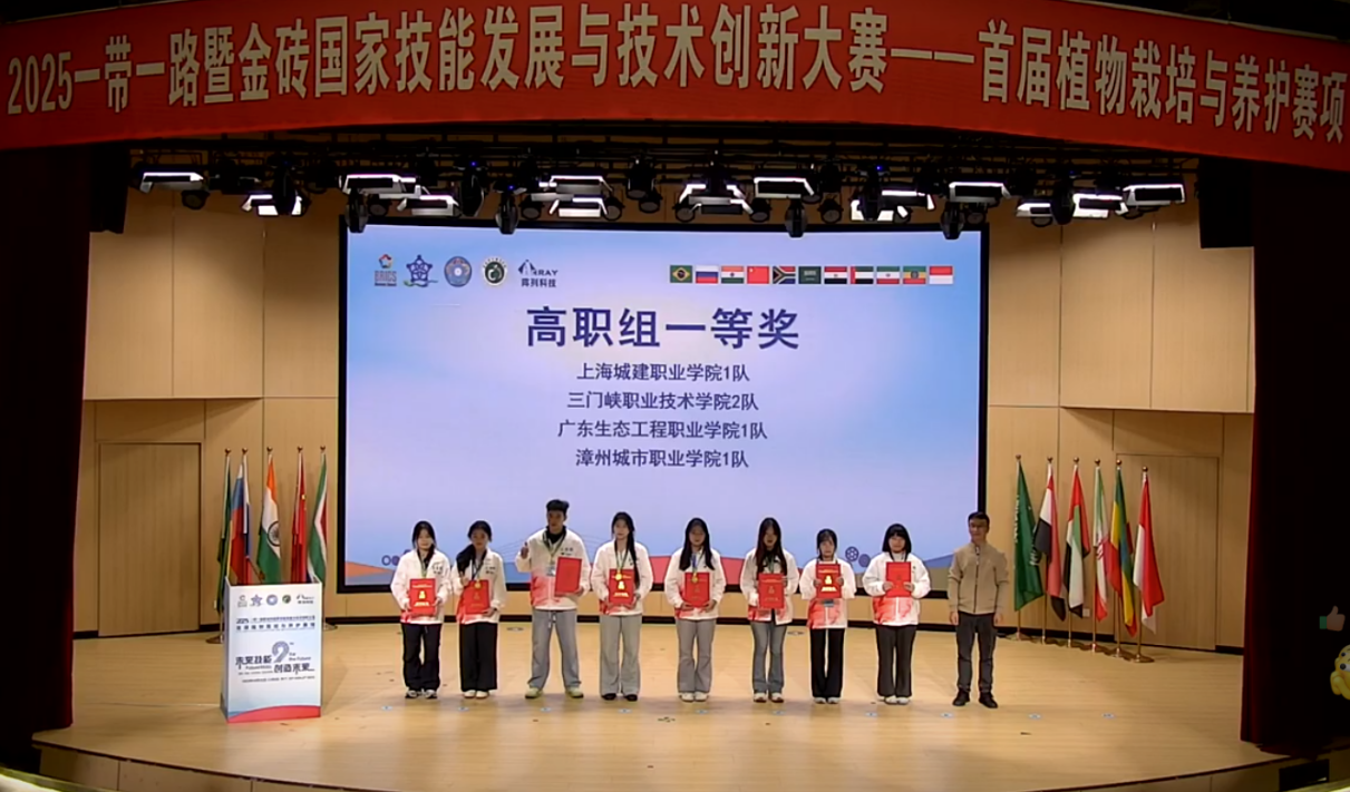 2025年11月2日,2025一带一路暨金砖国家技能发展与技术创新大赛首届植物栽培与养护赛项国内决赛在浙江台州科技职业学院成功举办。学院选派的三支师生代表队凭借扎实的专业知识、娴熟的操作技能和稳定的现场发挥,从来自全国的169支参赛队伍中脱颖而出,斩获1金、1银、1铜的优异成绩,实现该赛事成绩的历史性突破,彰显了我院在园林技术领域人才培养的雄厚实力,更展现了“以赛促教、以赛促学、以赛促改”教学改革理念的丰硕成果。