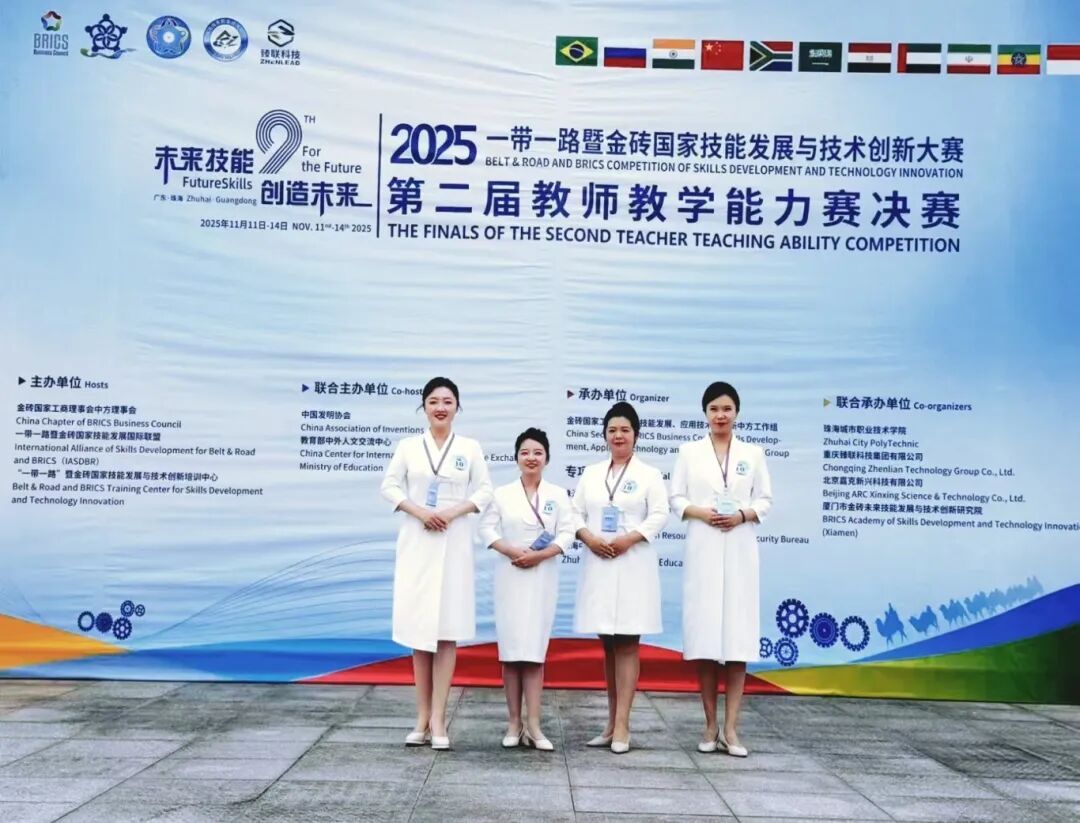 2025年11月11日至14日,2025一带一路暨金砖国家技能发展与技术创新大赛之第二届教师教学能力赛全国总决赛在珠海城市职业技术学院隆重举行。学院四支教学团队凭借先进的教学理念、精湛的教学技艺和富有特色的课程设计,从全国180支优秀职教队伍中脱颖而出,共斩获2银2铜的优异成绩,学院荣获“优秀组织奖”,彰显了我院在教师队伍建设与教学改革领域的显著成效,更展现了“以赛促教、以赛提能”育人理念的丰硕成果。