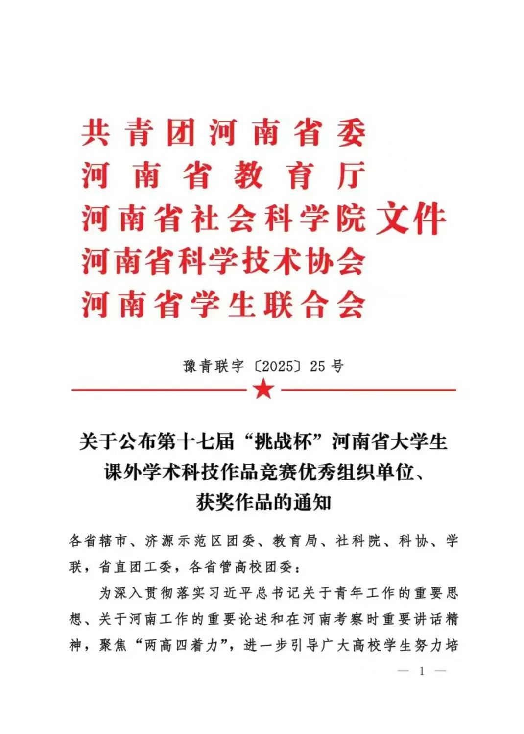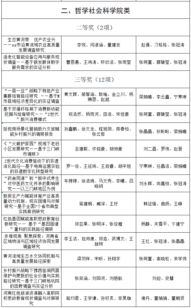 由共青团河南省委、河南省教育厅、河南省社会科学院、河南省科学技术协会、河南省学生联合会共同主办的第十七届 “挑战杯” 河南省大学生课外学术科技作品竞赛活动圆满落幕。本次竞赛自2025年3月启动省级比赛以来,得到了全省各高校的积极响应,共收到来自155所高校上报的4111 件作品。经过专家评审,138所高校的1108件作品进入终审决赛,内容涉及机械与控制、信息技术、数理、生命科学、能源化工、政治、经济、管理、法律等多个领域。学院在省赛中获奖33项,其中一等奖1项,二等奖4项,三等奖28项。