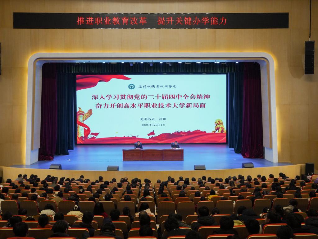 杨彤在报告中紧紧围绕习近平总书记在全会上的重要讲话和《中共中央关于制定国民经济和社会发展第十五个五年规划的建议》,从“深刻认识党的二十届四中全会的重大历史意义和现实意义”,“准确把握‘十五五’时期的历史方位和使命任务”,“全面把握‘十五五’时期经济社会发展的指导方针、目标任务和战略举措,推动全会精神在我院落地生根”,“勇担教育强国精神使命,奋力开创职业院校高质量发展新局面”和“扎实做好‘十四五’总结,科学谋划‘十五五’发展、推动全会精神在我院落地见效”等五个方面进行了全面、系统、深入的阐释。