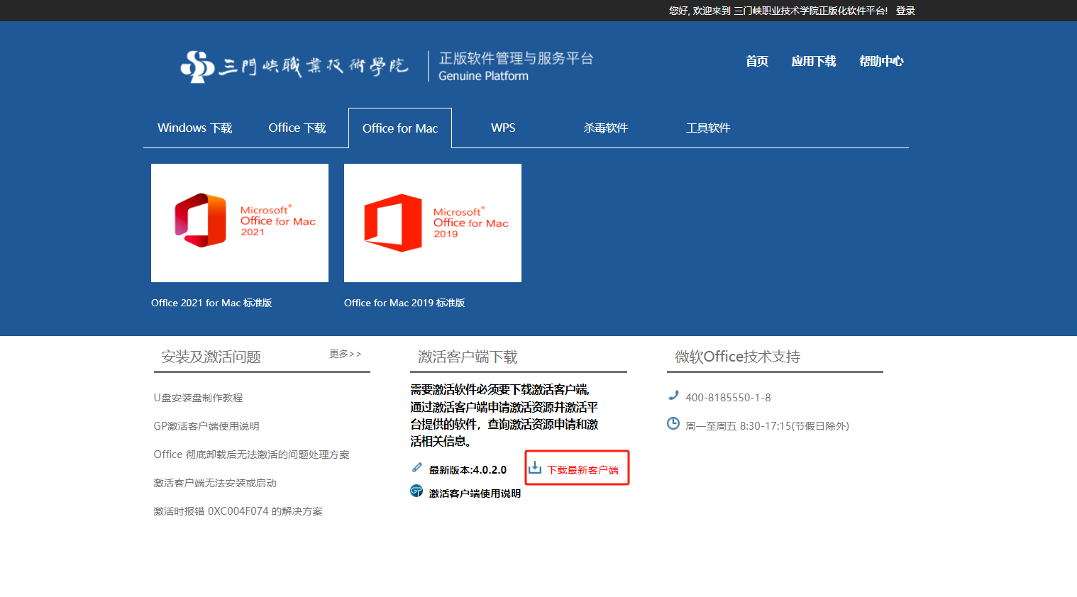 (二)安装正版Windows和Office后,需在平台上下载激活客户端激活正版软件,mac无需下载客户端。
