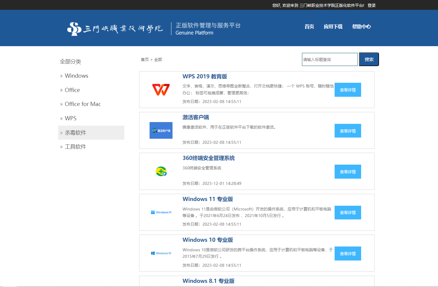 根据河南省教育厅办公室关于印发《河南省教育系统软件正版化工作方案(2022-2025)》的通知(教办科技〔2022〕286号)要求,推进操作系统软件、办公软件、杀毒软件3类通用软件合法授权,为贯彻落实国家知识产权保护和网络安全等法律法规,满足学校日常教学、科研和办公等需要,学校部署了正版软件管理与服务平台,首批上线三类通用软件提供下载,即日起全校师生可通过该平台免费获取使用微软正版操作系统、Office/WPS办公软件、360安全管理终端等软件,现就有关事项通知如下: