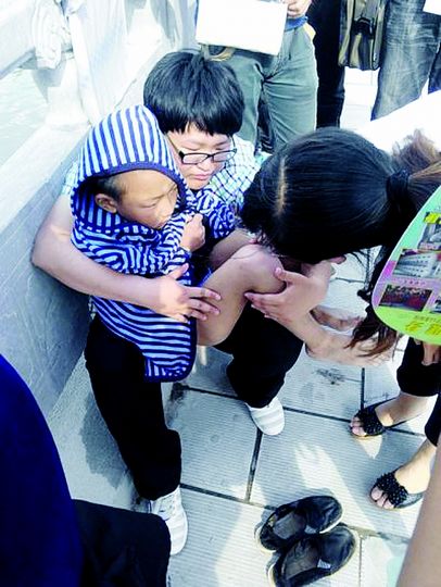 大家在为男孩换衣服。紫荆 摄