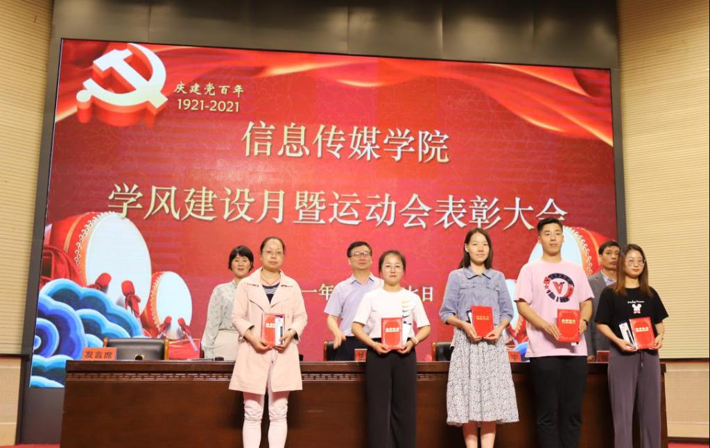 5月27日晚,信息传媒学院在学术报告厅举行学风建设月暨运动会总结表彰会。院长王军才,副院长侯枫,副院长张志鹏出席会议,全体师生参加会议。会议由党总支书记王静宇主持。